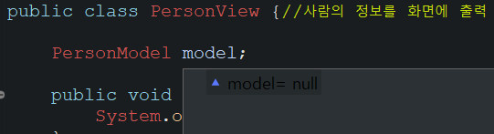 PersonModel 클래스형 변수로 선언한, 이 model이라는 친구가 null값이래요