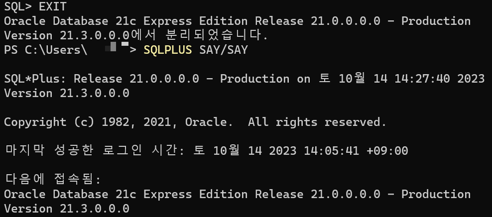 관리자 계정으로 접속했으니, EXIT를 통해 그대로 SQLPLUS에서 빠져나오고..