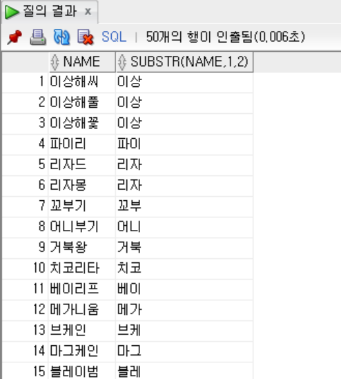 --포켓몬 이름 문자열 첫번째 자리부터 두 글자 출력