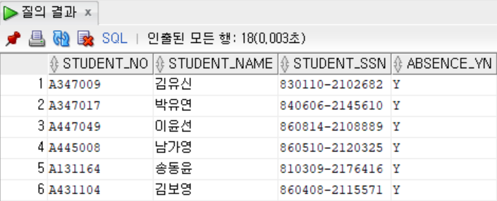 SELECT student_no, student_name, student_ssn ,absence_yn