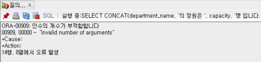 --ORACLE은 CONCAT 매개변수를 두 개만 받기 때문에 중첩문을 사용해야함
