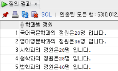 department_name || '의 정원은' || capacity || '명 입니다.' as "학과별 정원"