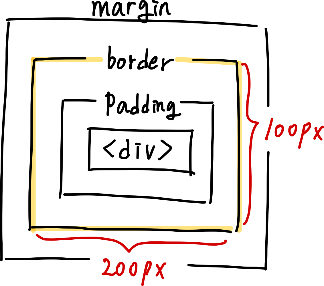 content-box와 동일하게 width:200px, height:100px의 크기를 지정했다고 가정하자.