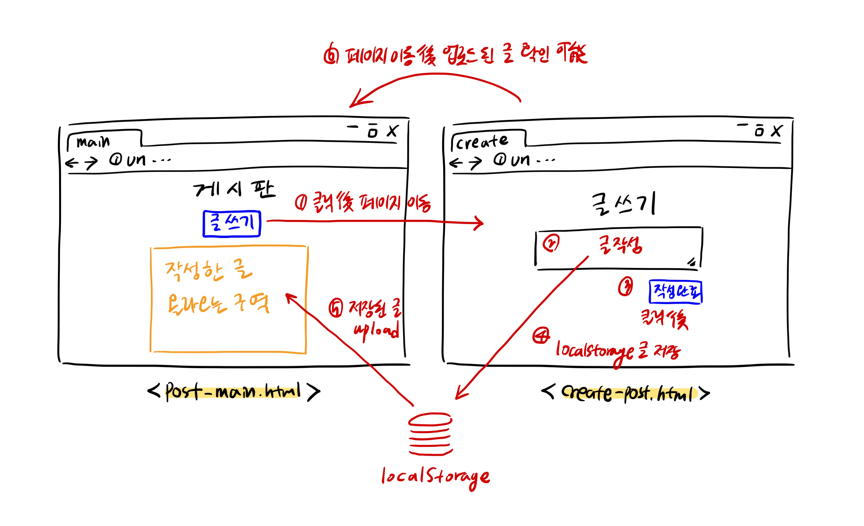 create-post : 작성완료 버튼 누르면 textarea에서 작성한 글을 localStorage에 저장