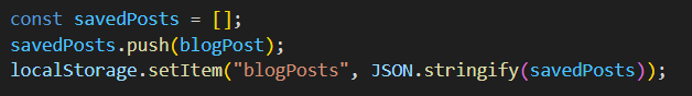 localStorage.setItem("blogPosts", JSON.stringify(savedPosts));
