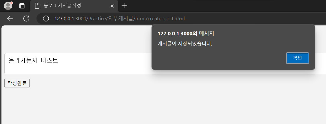 alert("게시글이 저장되었습니다.");
