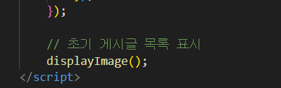 스크립트 맨 마지막 줄에 아까 만든 displayImage(); 를 추가하면 끝!