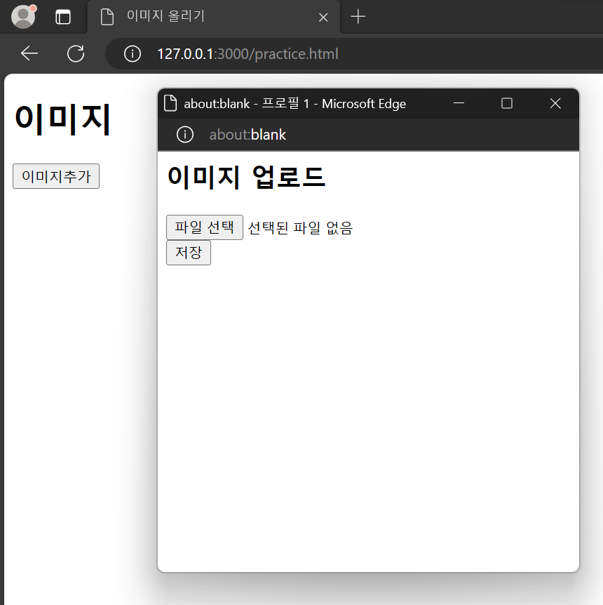 1) 이미지추가 버튼을 클릭했을 때 새 창 띄우기 id=add-post