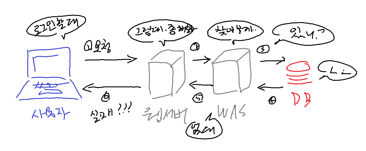 그럼 WAS는 사용자가 입력한 정보가 로그인에 적합한지 DB를 확인할 것이고..