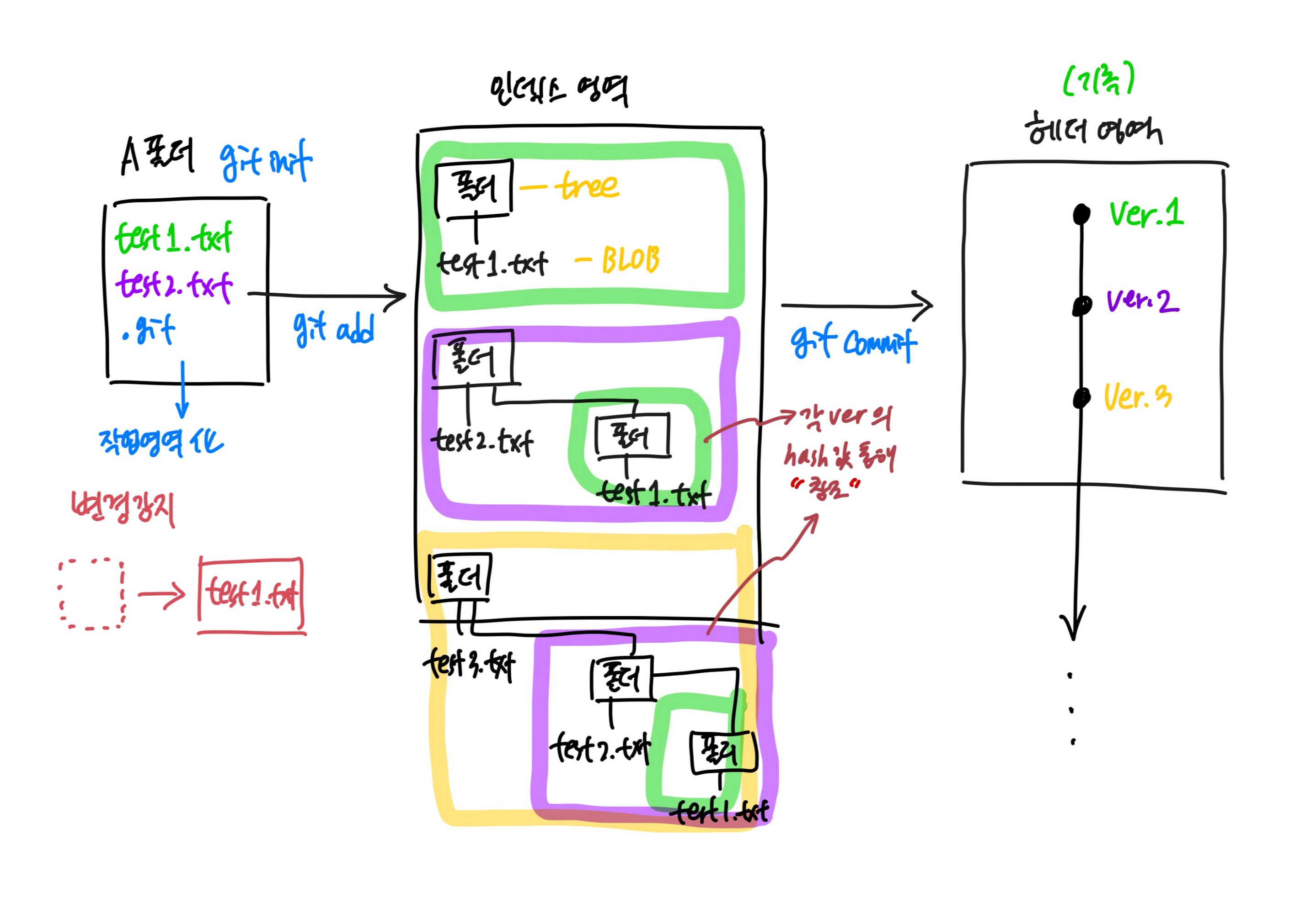 이때 저 .git을 버전 관리 중에 생성되는 여러 정보가 저장되는 공간으로 보면 된다.